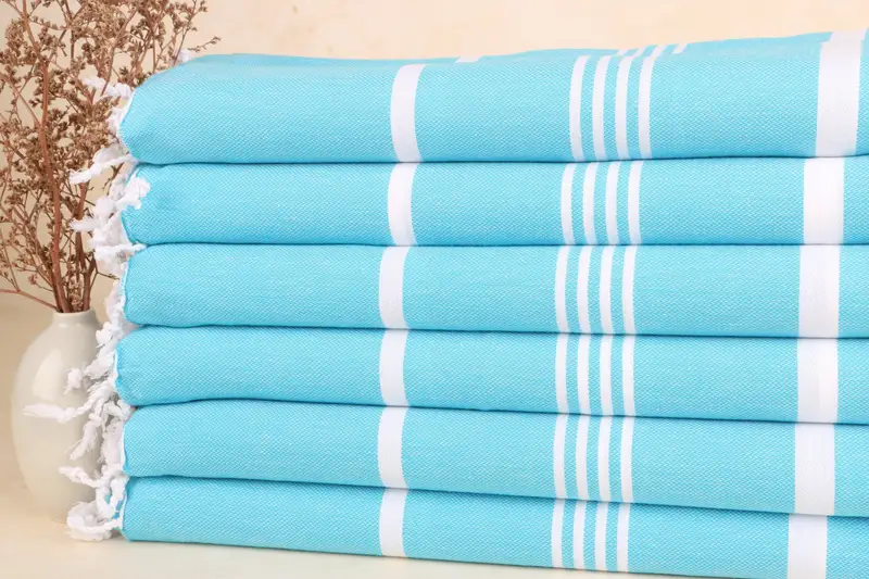 Toalla de playa turca a rayas azul claro personalizada, 40 x 71 pulgadas