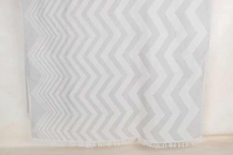 Toalla en zigzag personalizada gris claro, 40x71 pulgadas, algodón turco orgánico