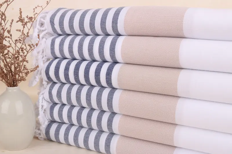 Toalla de baño turca a rayas azul marino y beige, algodón orgánico, 40 x 71 pulgadas