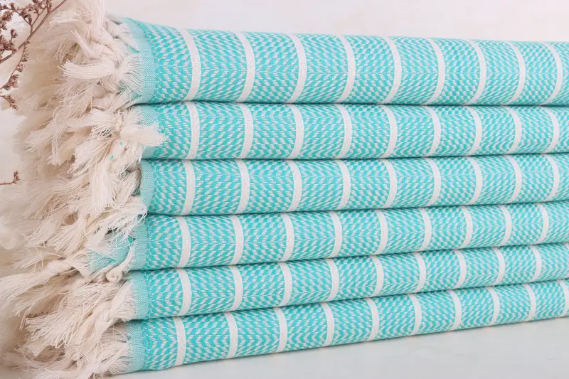 Toalla de playa con monograma de algodón turco, rayas verdes, 40 x 71 pulgadas
