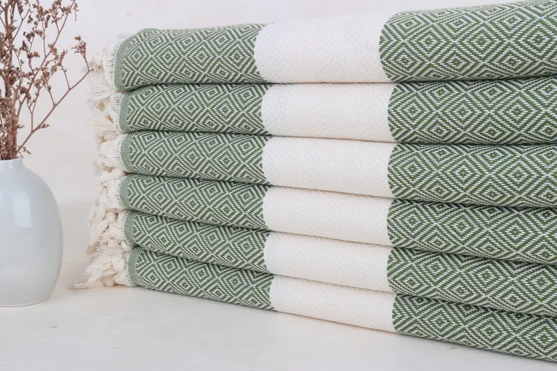 Toalla de playa turca personalizada con diamante verde caqui, 40 x 71 pulgadas