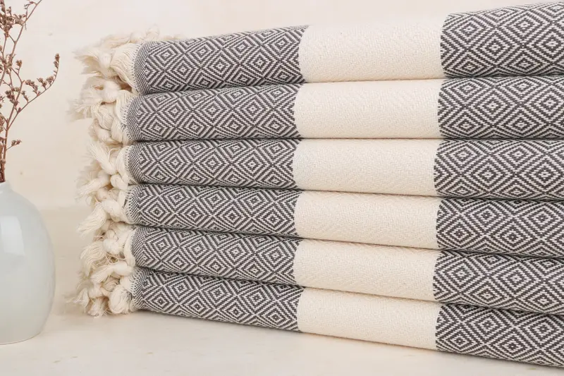 Toalla Turca de Algodón Orgánico Diamante Marrón Oscuro, 40x71 Pulgadas