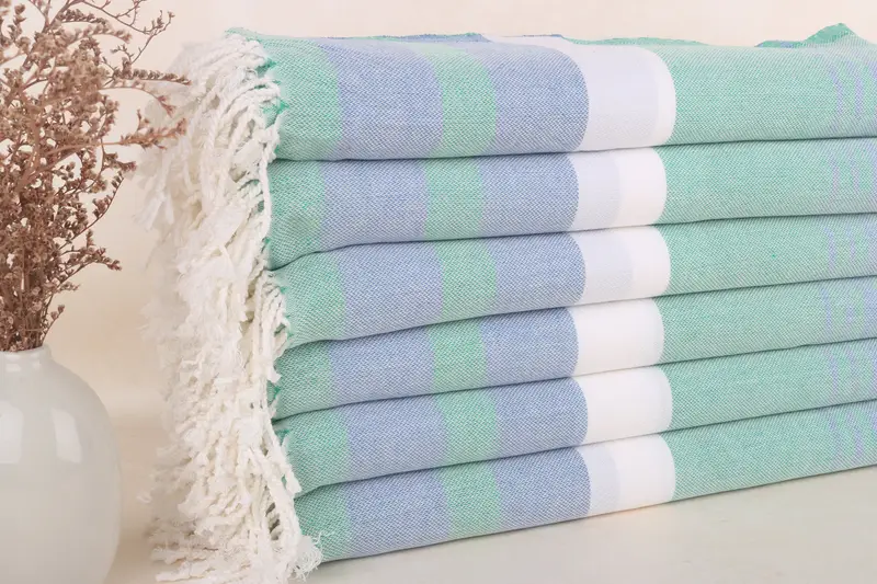 Toalla de playa turca personalizada, rayas verdes y azules, 40 x 71 pulgadas
