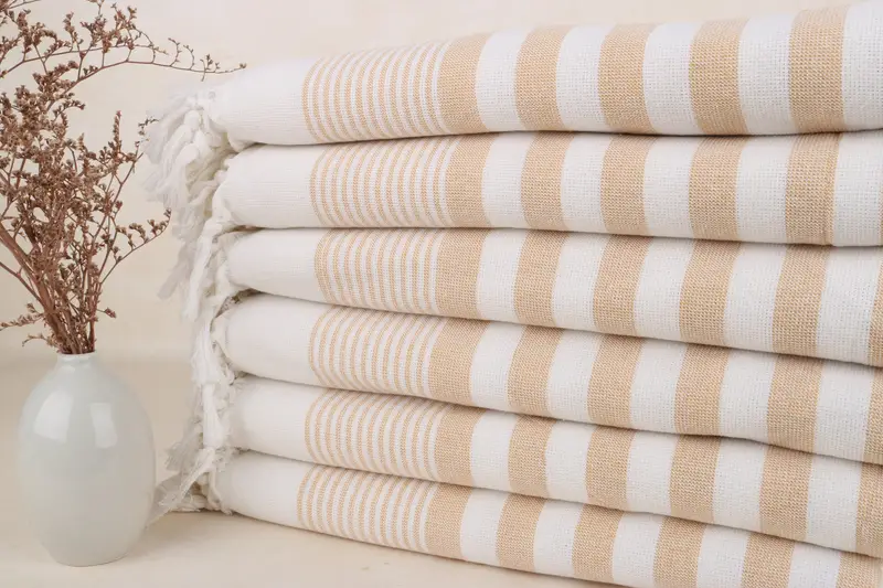 Toalla de playa turca personalizada, algodón de rizo con rayas mostaza, 40 x 67 pulgadas