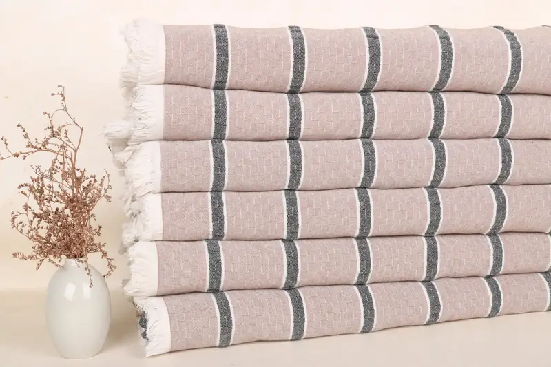 Manta de algodón turco bohemia a rayas marrón y negro, 83 x 95 pulgadas