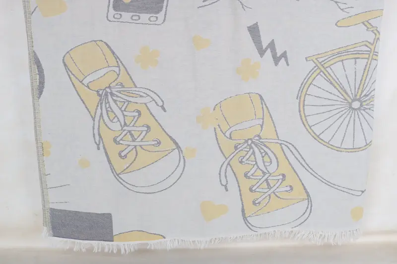 Manta con patrón de bicicleta, Chevron amarillo, 79x95 pulgadas, algodón reciclado/orgánico