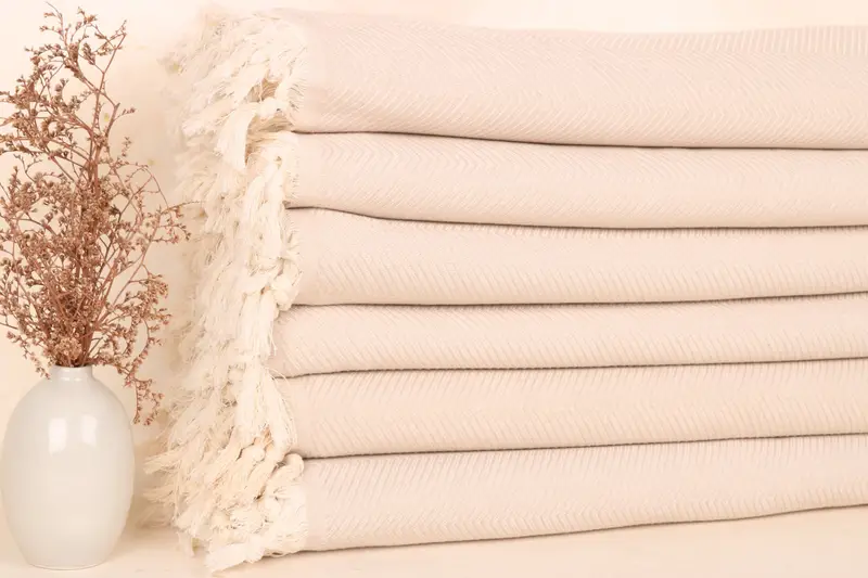 Manta de algodón beige tejida a mano turca, tiro suave, 67x83 pulgadas