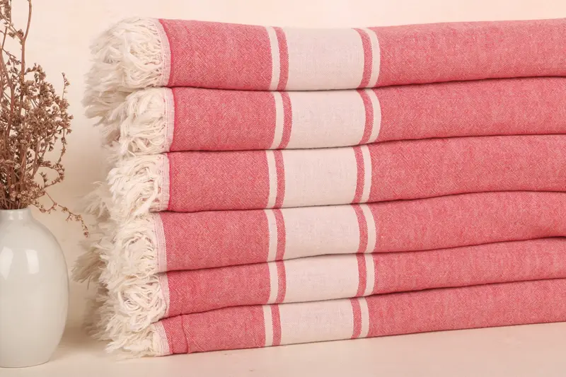 Manta de algodón roja tejida personalizada con beige, 60x71 pulgadas
