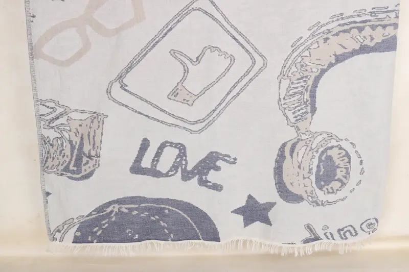 Manta de algodón azul marino y marrón con estampado de zapatos, 79x95 pulgadas