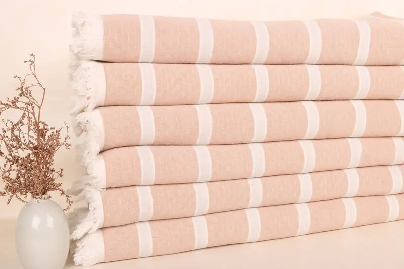 Manta tejida de algodón con rayas marrón lechoso y gris claro, 83 x 95 pulgadas