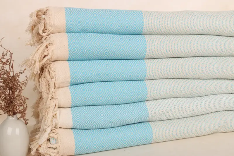 Manta turca con borde beige turquesa, 79 x 103 pulgadas
