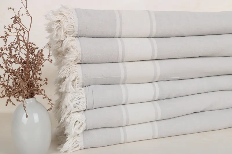 Manta a rayas de algodón de patchwork gris claro, 60 x 71 pulgadas