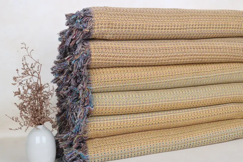 Manta de colores con estampado de animales de algodón mostaza, 87 x 89 pulgadas
