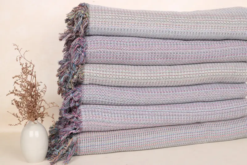 Manta decorativa de algodón gris claro con forma de rombos, 87 x 89 pulgadas