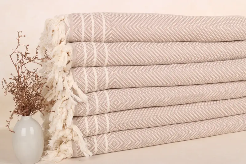 Manta de algodón beige con estampado de cachemira y diamantes, 71 x 95 pulgadas