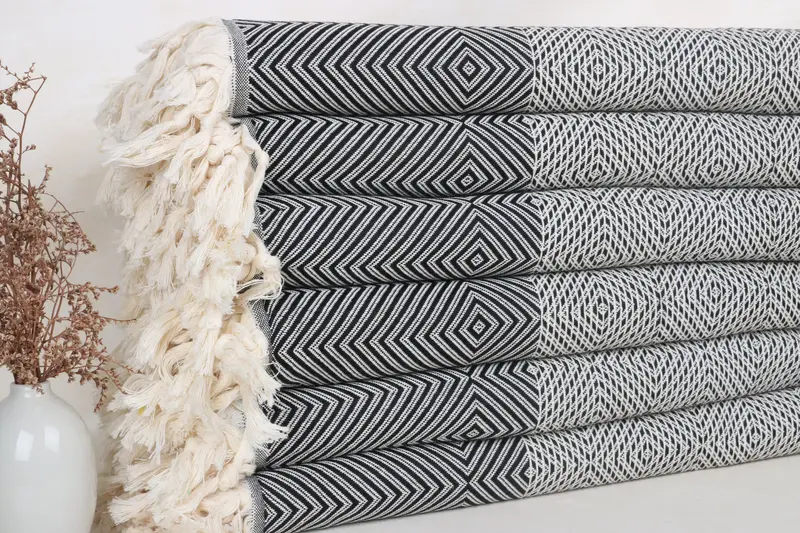 Manta con monograma Black Diamond, algodón turco orgánico, 79 x 91 pulgadas