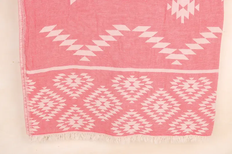 Manta de algodón rojo claro, 56 x 83 pulgadas, acento beige