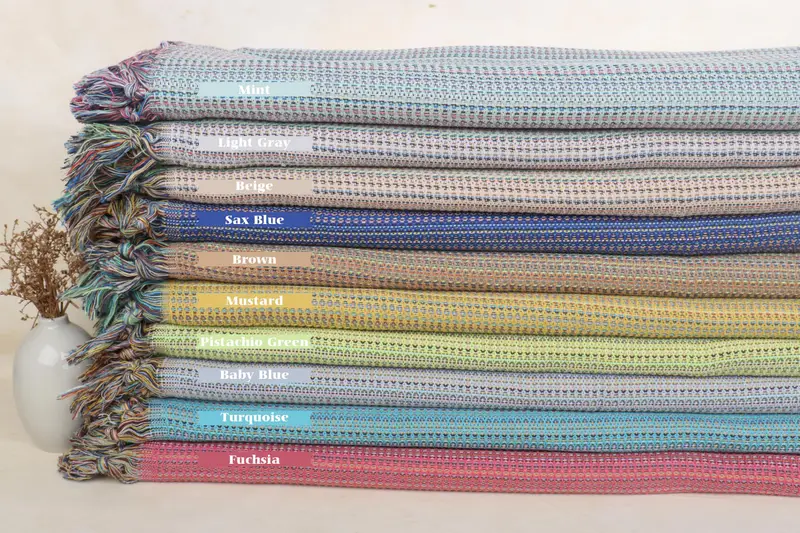 Manta de algodón 79x99 Beige Chevron, algodón orgánico reciclado, 79x99 pulgadas