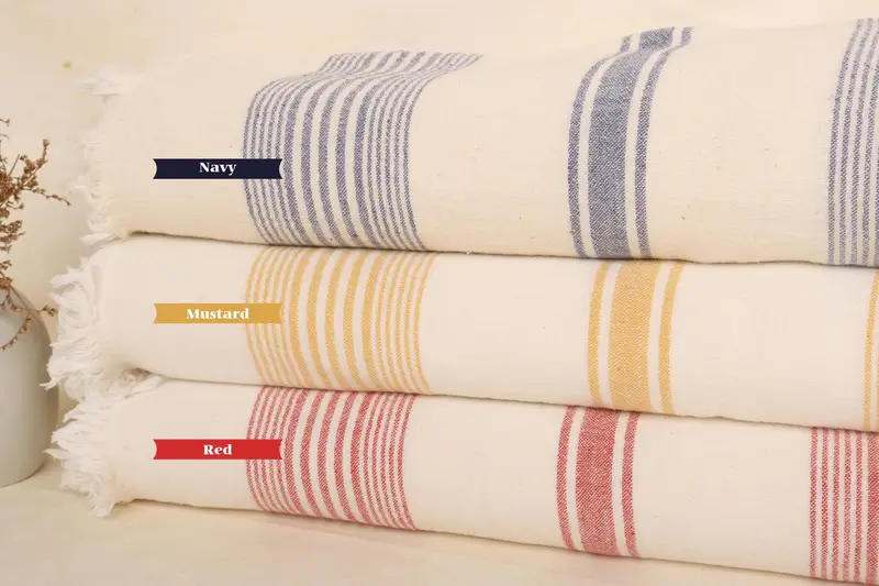 Manta tejida de algodón orgánico con estampado geométrico a rayas, 77 x 95 pulgadas