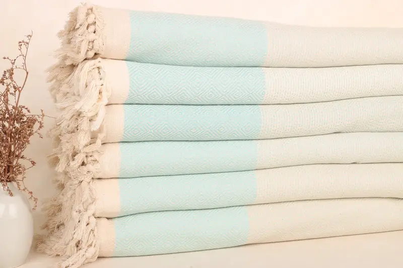 Manta a cuadros de algodón color menta con apliques Kantha, Batik, 79 x 103 pulgadas