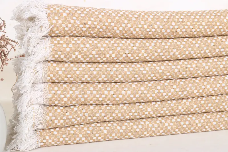 Lanzamiento de algodón mostaza de 56x79 pulgadas, monograma, espiga, lanzamiento boho