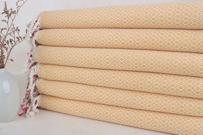 Toalla de playa turca con diamantes mostaza, 40 x 71 pulgadas