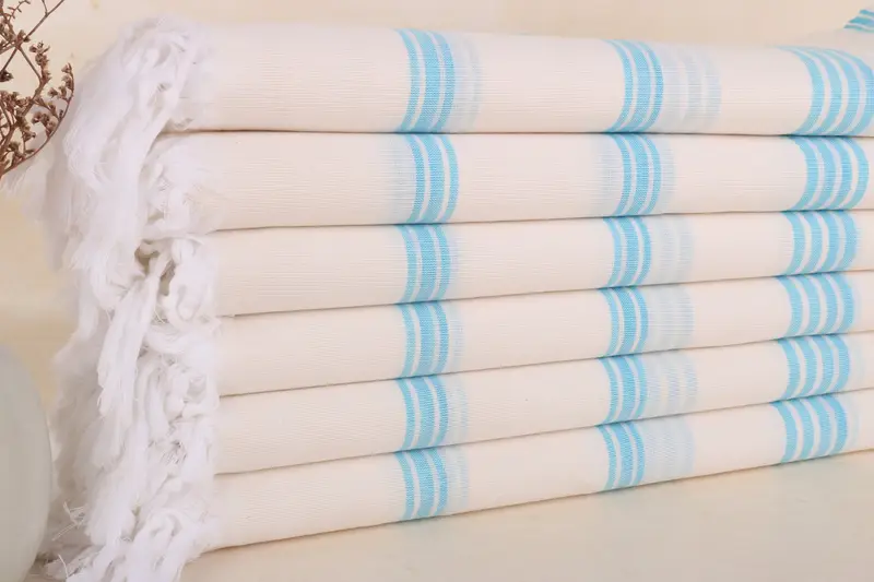 Toalla de playa turca de algodón orgánico con rayas turquesas, 40 x 71 pulgadas