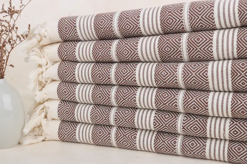 Toalla Turca de Algodón Orgánico, Diamante Marrón, 38x69 Pulgadas