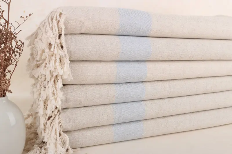Toalla de algodón turco personalizada a rayas azul bebé, 36 x 71 pulgadas