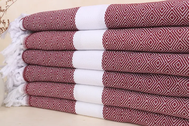 Toalla turca personalizada Diamante burdeos, 40x71 pulgadas