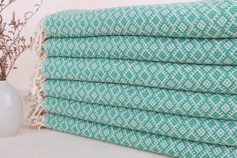 Toalla de playa turca personalizada con diamante verde, 40 x 71 pulgadas