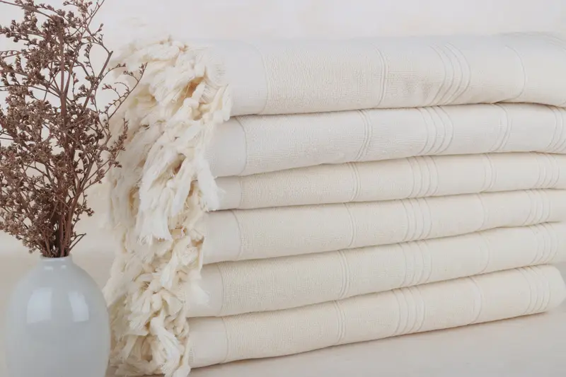 Toalla de playa con monograma de algodón turco a rayas, color beige, 36 x 71 pulgadas