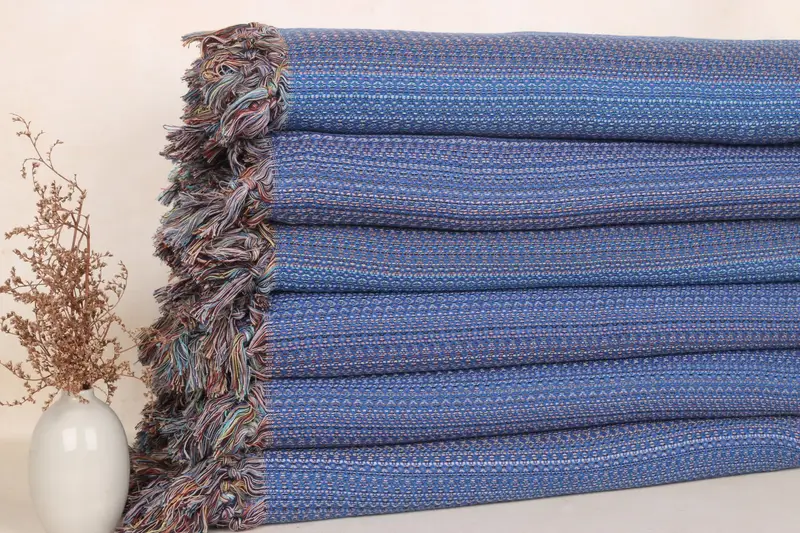 Manta de algodón azul Sax, manta tejida personalizada, 87 x 89 pulgadas