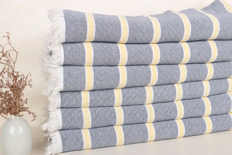 Manta a rayas de algodón azul marino y amarillo, regalos para dama de honor, 83 x 95 pulgadas