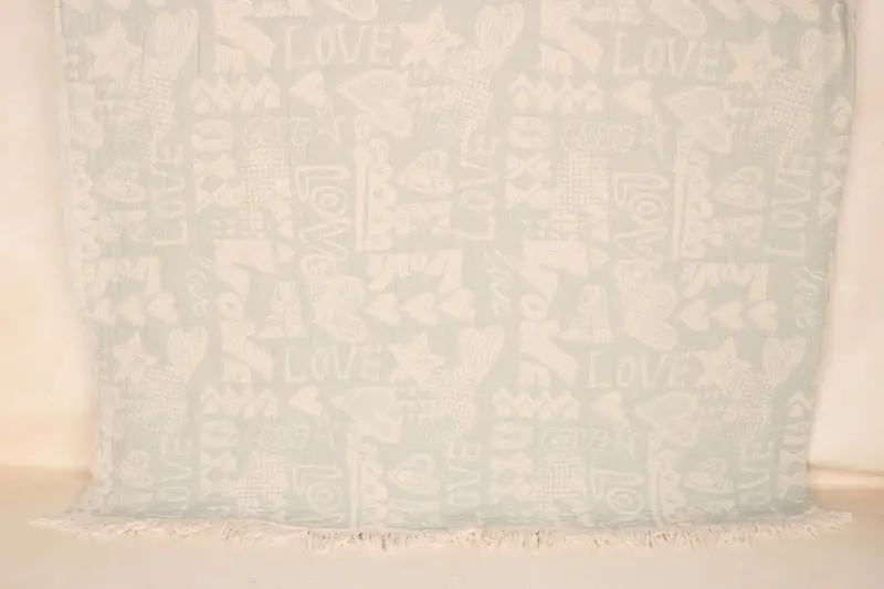 Manta decorativa bohemia con monograma de algodón color menta, 75 x 97 pulgadas