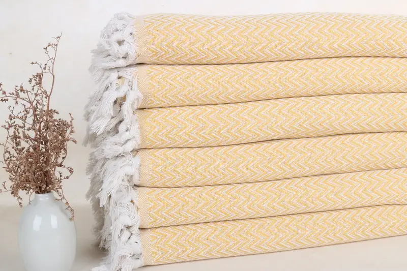 Mantel Zig Zag, manta de algodón mostaza, manta tejida, 63 x 75 pulgadas