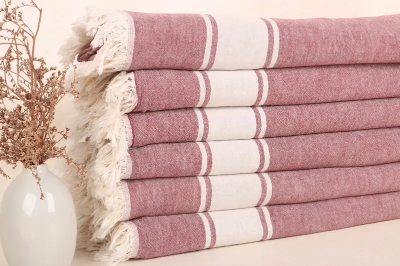 Manta a cuadros a rayas personalizada con tiro de algodón burdeos, 60x71 pulgadas