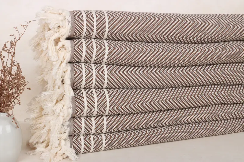 Manta de algodón marrón 71x95 pulgadas, beige, algodón turco orgánico