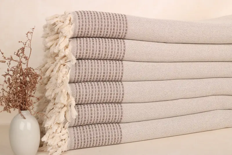 Manta de algodón marrón a rayas, 91 x 95 pulgadas, lunares beige