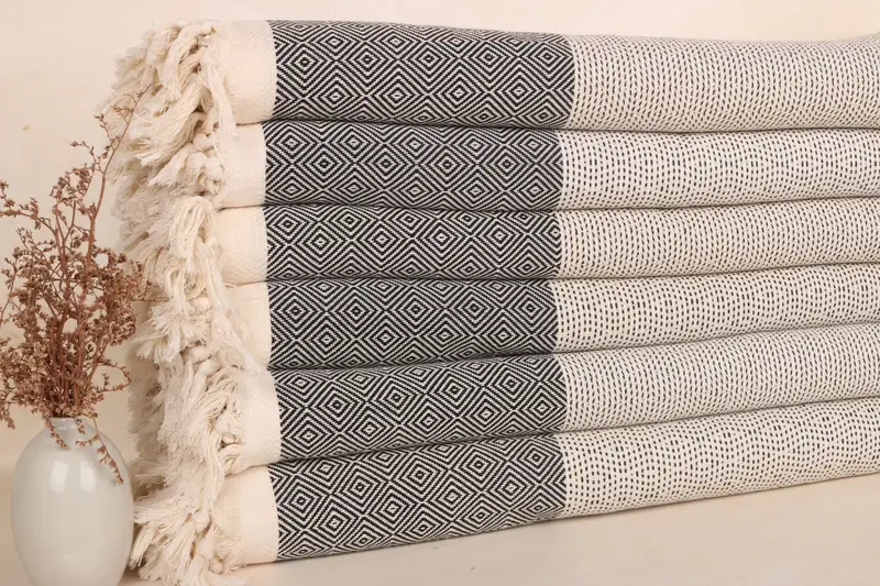 Manta de algodón negra personalizada con diseño de cachemira, 79 x 103 pulgadas