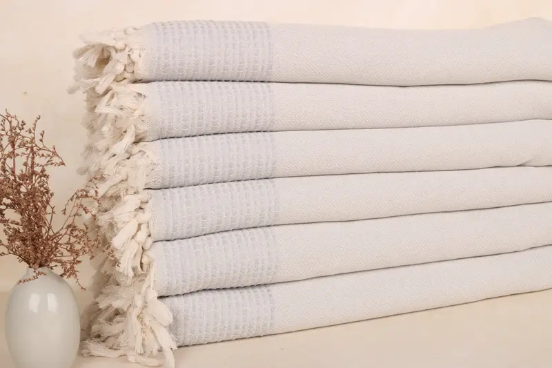 Manta de tiro de algodón a rayas gris claro, 91 x 95 pulgadas, patrón de chevrón