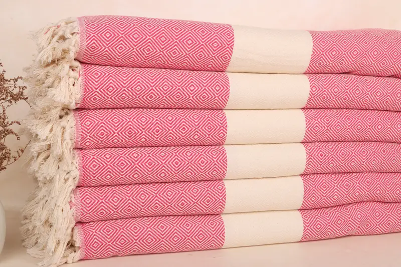 Manta de Tiro Bohemio de Algodón Fucsia, 79x95 Pulgadas