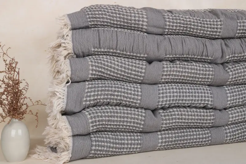 Manta de algodón turco gris oscuro y beige, 79 x 83 pulgadas