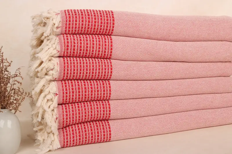 Lanzamiento de algodón rojo de 91x95 pulgadas, manta turca, mantas boho, lanzamiento a rayas
