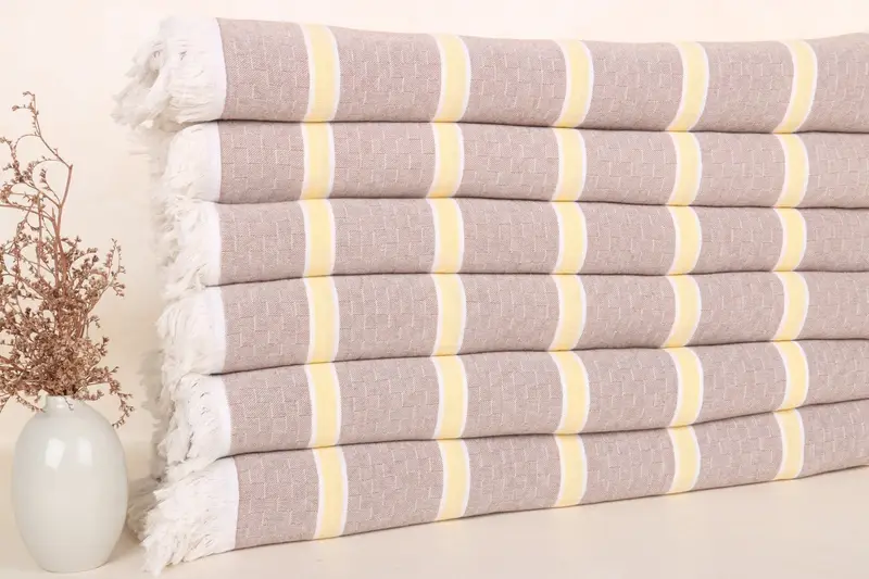 Manta a Rayas de Algodón Orgánico Marrón-Amarillo, 83x95 Pulgadas