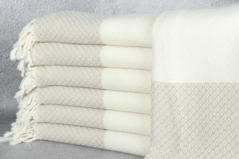 Toalla Turca Personalizada Beige Claro, Patrón de Diamantes, 36x71 Pulgadas