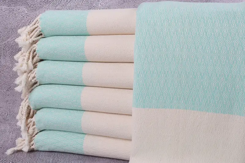 Toalla de baño turca con monograma de menta de diamante orgánico, beige, 36 x 67 pulgadas