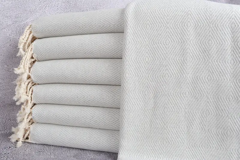 Toalla turca de algodón orgánico con diseño de rombos, gris claro, 40 x 74 pulgadas
