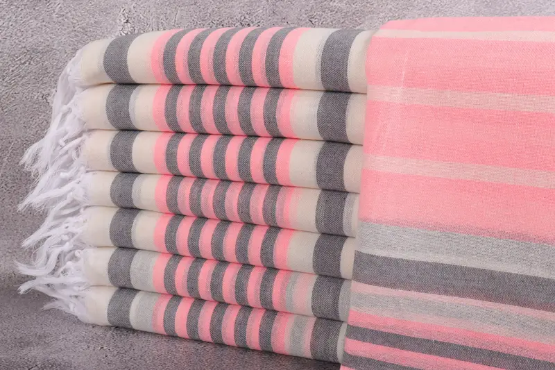Las toallas turcas están fabricadas con algodón turco ecológico de primera calidad, lo que garantiza su textura suave y alta absorbencia. Dando como resultado un producto que se vuelve progresivamente más suave con cada lavado, estas toallas son ideales para múltiples usos. Caracterizados por unas dimensiones de 40x67 pulgadas o 100x170 centímetros, pesan aproximadamente 175 gramos y presentan tolerancias de tejido a mano de hasta 2 pulgadas o 5 centímetros.