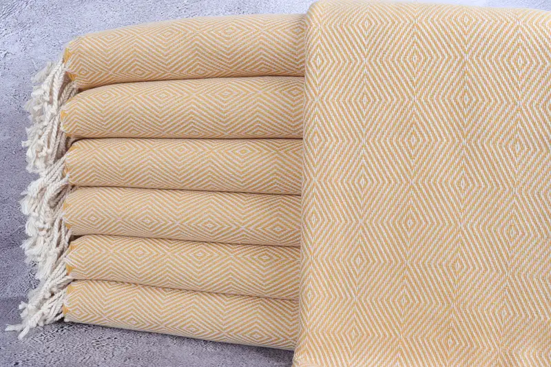 Toalla de baño turca Diamond Mostaza Peshtemal, 40x74 pulgadas